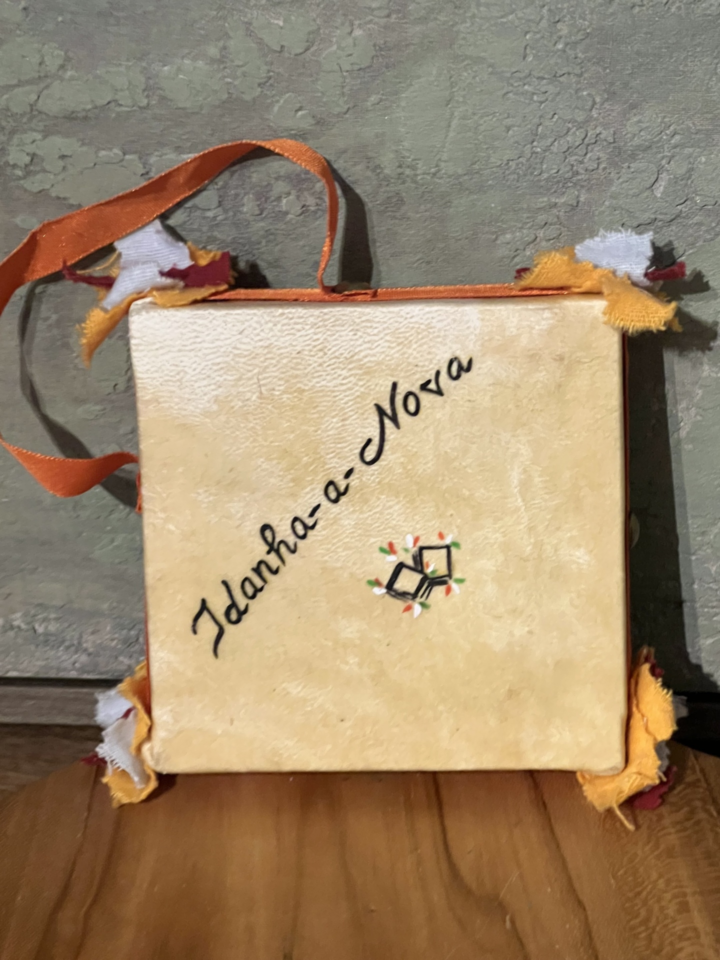 Adufe miniatura 4,50 € 9,00 € Desconto de %. Partilhar Comprar Contactar Oportunidades - últimas peças. Válido de 2 de Janeiro de 2026 às 00:00 até 1 de Janeiro de 2027 às 00:00. Adufe com fitas laranja elaborado artesanalmente . Medidas: 10 cm * 10 cm Artesã: Coisas da Aldeia Marca Coisas da Aldeia