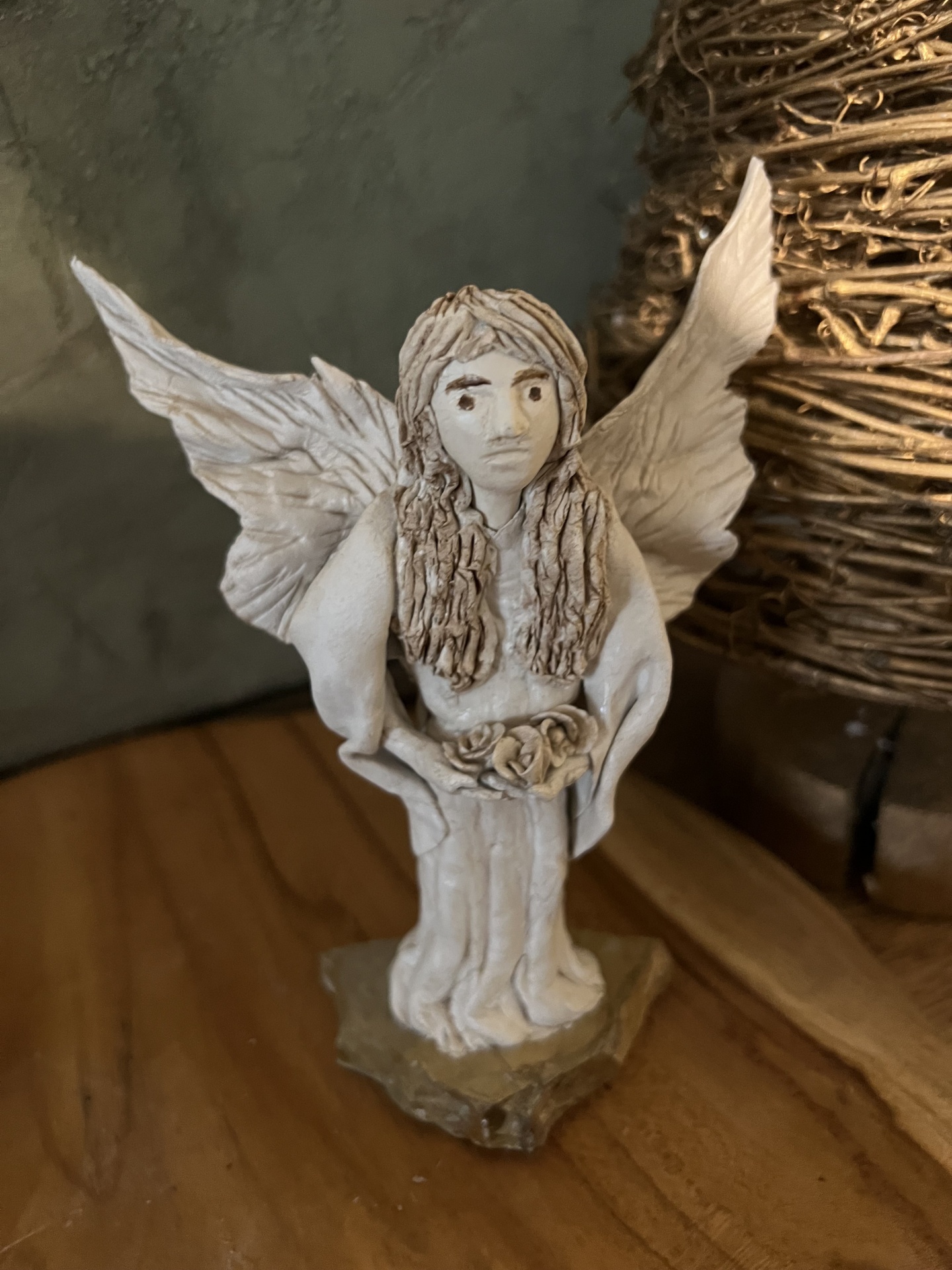 Anjo com flores 9,00 € 18,00 € Desconto de %. Partilhar Comprar Contactar Oportunidades - últimas peças. Válido de 2 de Janeiro de 2026 às 00:00 até 1 de Janeiro de 2027 às 00:00. Anjo modelado manualemnte em massa cerâmica e base em pedra . Medidas: 17 cm Artesã: Ester Andrade Marca Ester Andrade Características