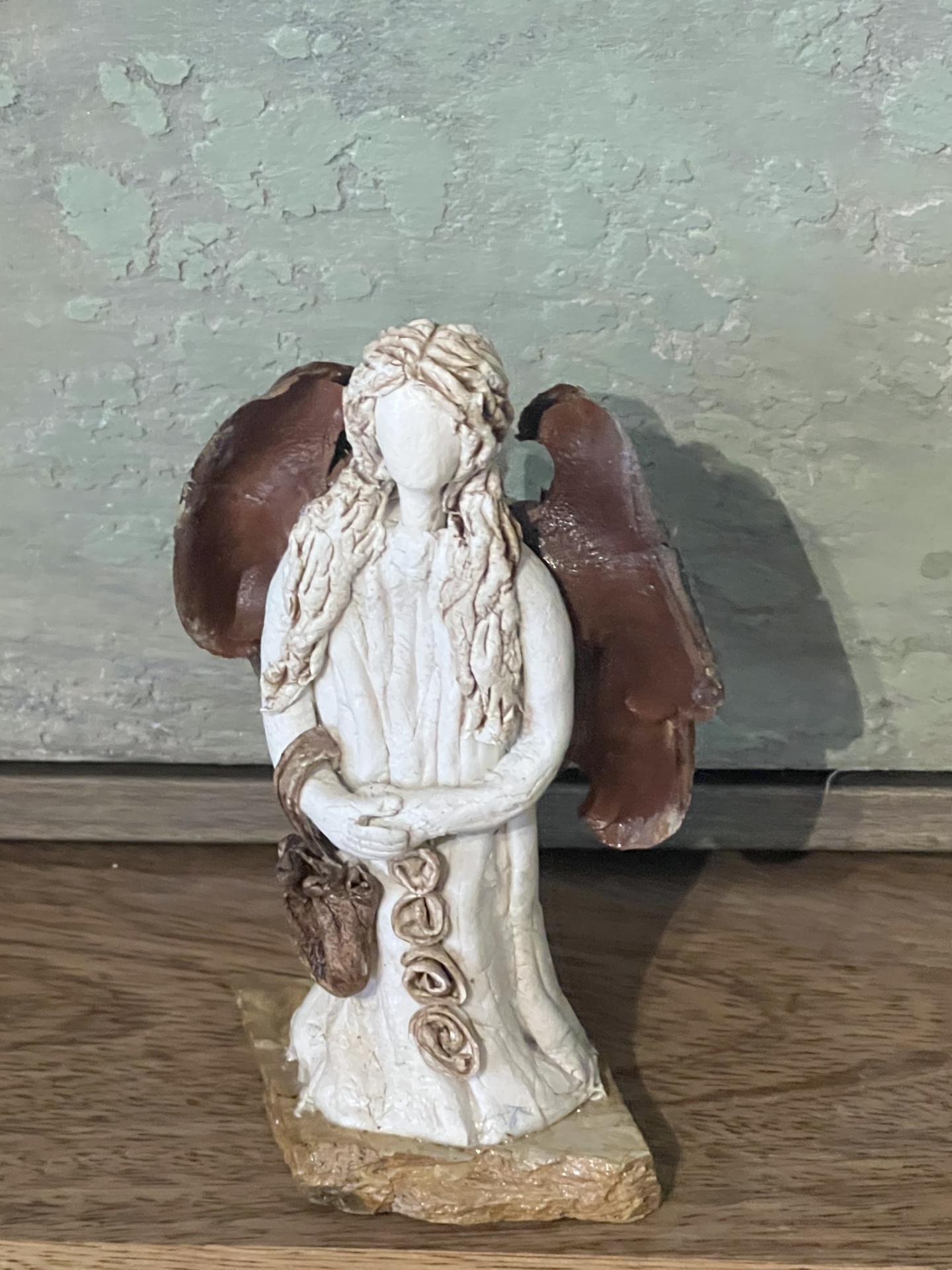 Anjo sem rosto 6,00 € 12,00 € Desconto de %. Partilhar Comprar Contactar Oportunidades - últimas peças. Válido de 2 de Janeiro de 2026 às 00:00 até 1 de Janeiro de 2027 às 00:00. Anjo sem rosto em massa ceramica ,modelada manualmente. (anjinho) Medidas: 13 cm de altura Artesã: Ester Andrade Marca Ester Andrade