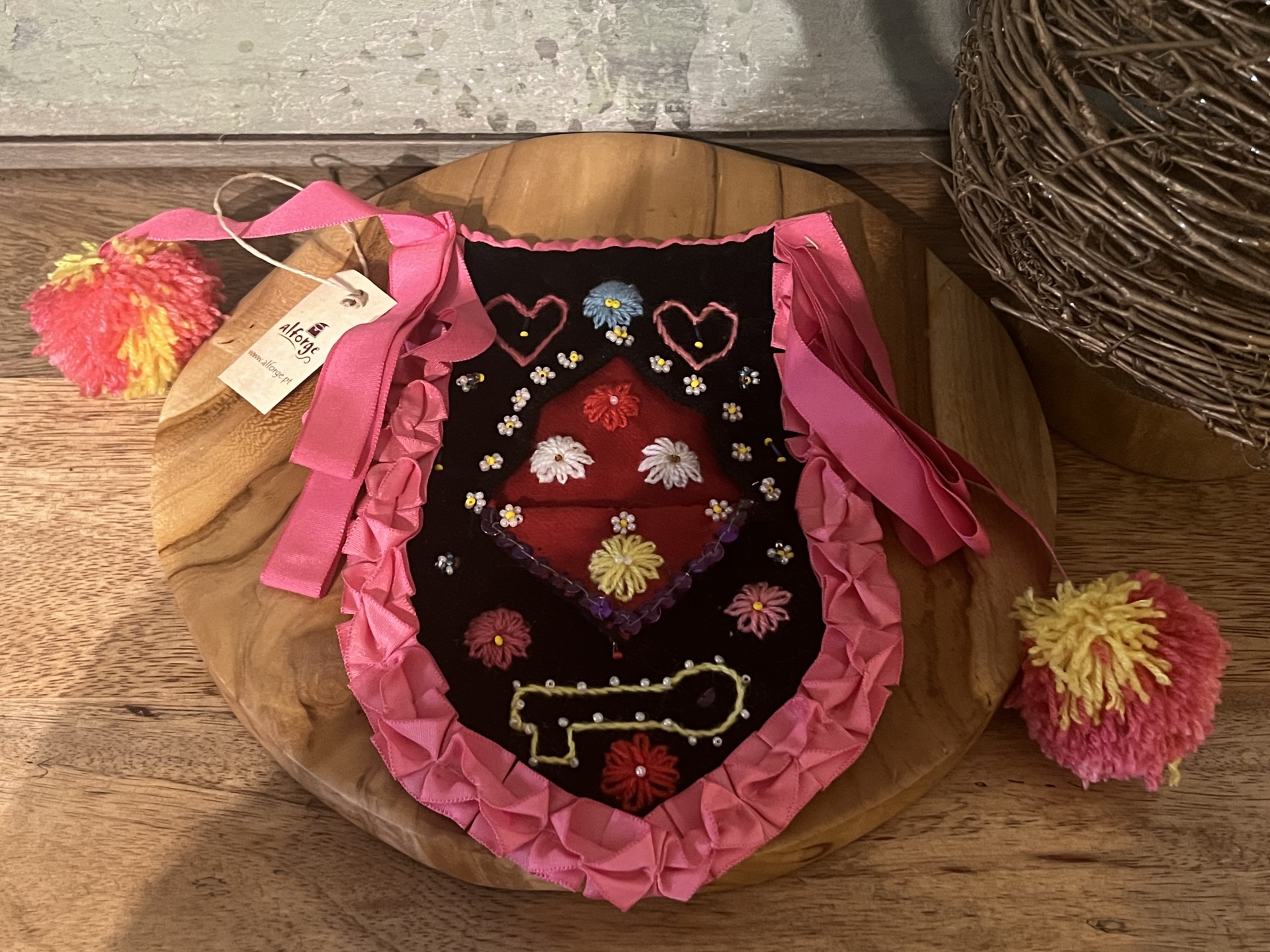 Bolso de cintura tradicional 25,00 € 50,00 € Desconto de %. Partilhar Comprar Contactar 1 unidades em stock Oportunidades - últimas peças. Válido de 2 de Janeiro de 2026 às 00:00 até 1 de Janeiro de 2027 às 00:00. Bolso de cintura tradicional , bordado e adornado usado pelas mulheres das beiras. Medidas : 23 cm * 14 cm Artesã: Coisas da aldeia Marca Coisas da Aldeia Características