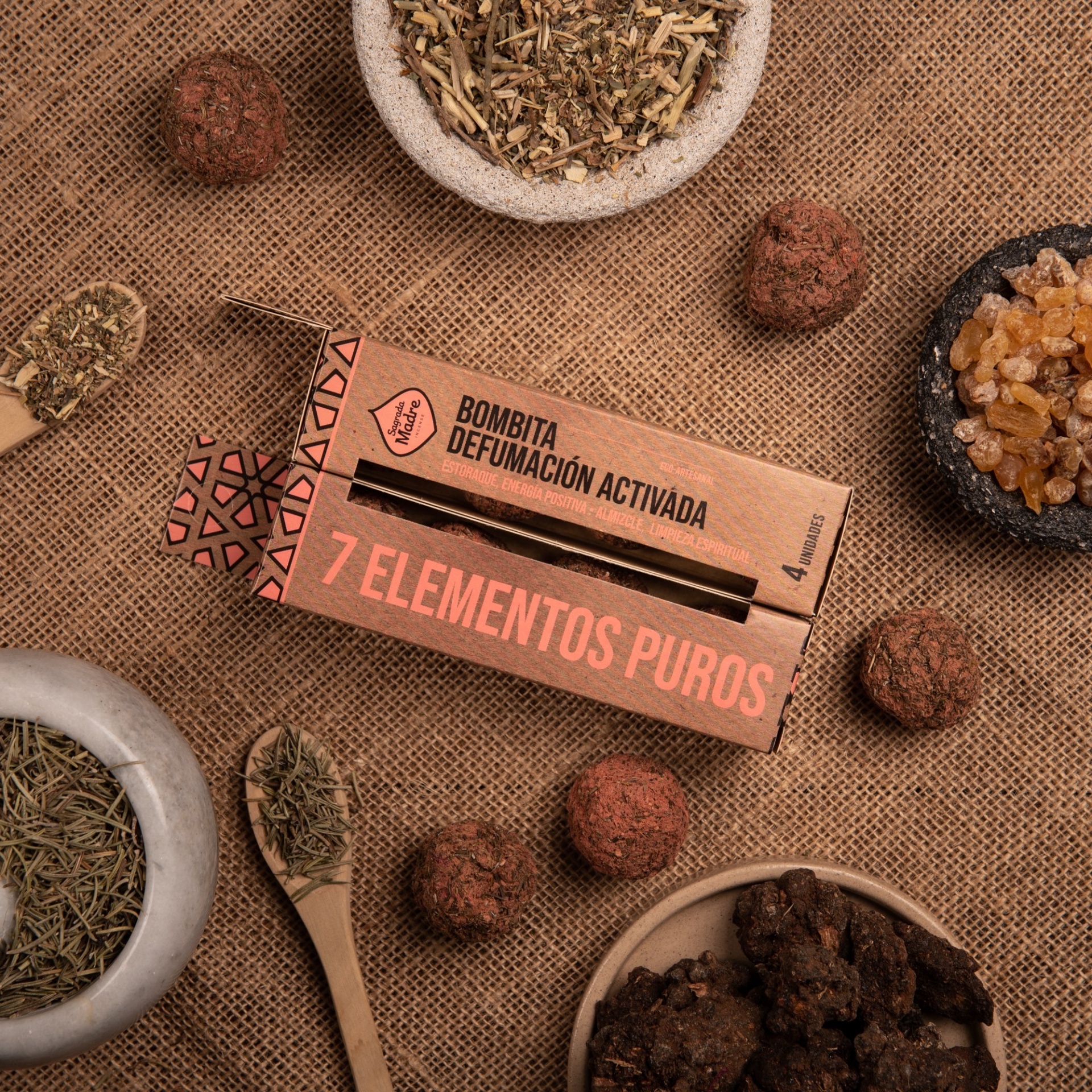 As bom da defumação 7 caminhos , são compostas por , Cânfora que tem como propriedade a limpeza das pessoas , lovais assim como a purificação, Benjoim para abrir caminho e alcançar a luz divina , Olíbano , limpeza espiritual , a proteção da alma , agindo contra a depressão , promovendo a clarividência. O alecrim para purificar os locais e pessoas , elevando os níveis de pensamento , sendo que o seu aroma trás alegria . Por fim a arruda que é uma das plantas mais poderosas na eliminação de energias negativas , conferindo proteção e aumentando a segurança.