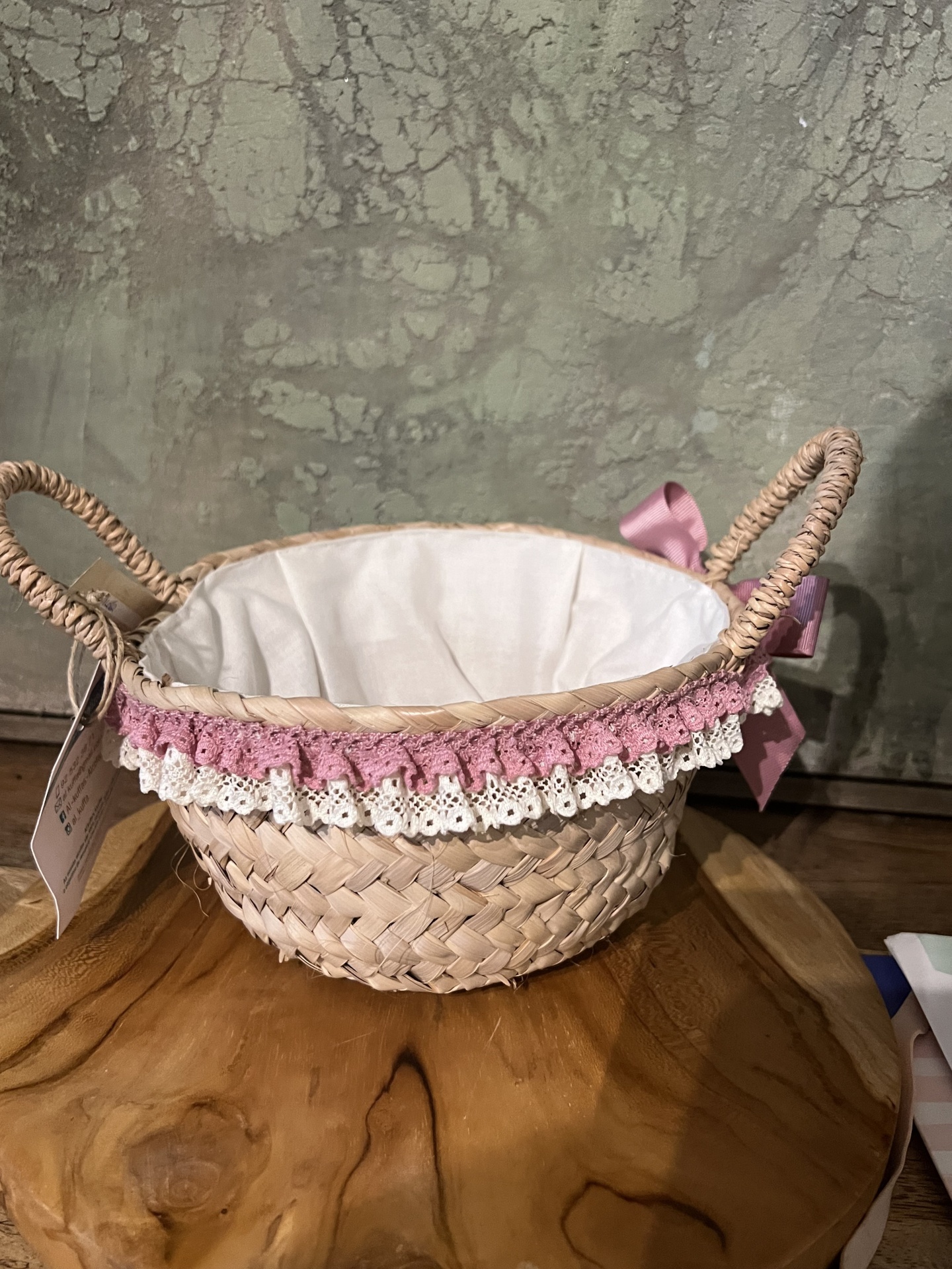 Cesta pequena redonda 11,25 € 22,50 € Desconto de %. Partilhar Comprar Contactar 1 unidades em stock oportunidades - últimas peças. Válido de 2 de Janeiro de 2026 às 00:00 até 1 de Janeiro de 2027 às 00:00. Cesta pequena redonda forrada com laço Medidas: 10 cm de altura , 18 cm de diâmetro Artesão: Alkufa´s Marca Alkufa´s