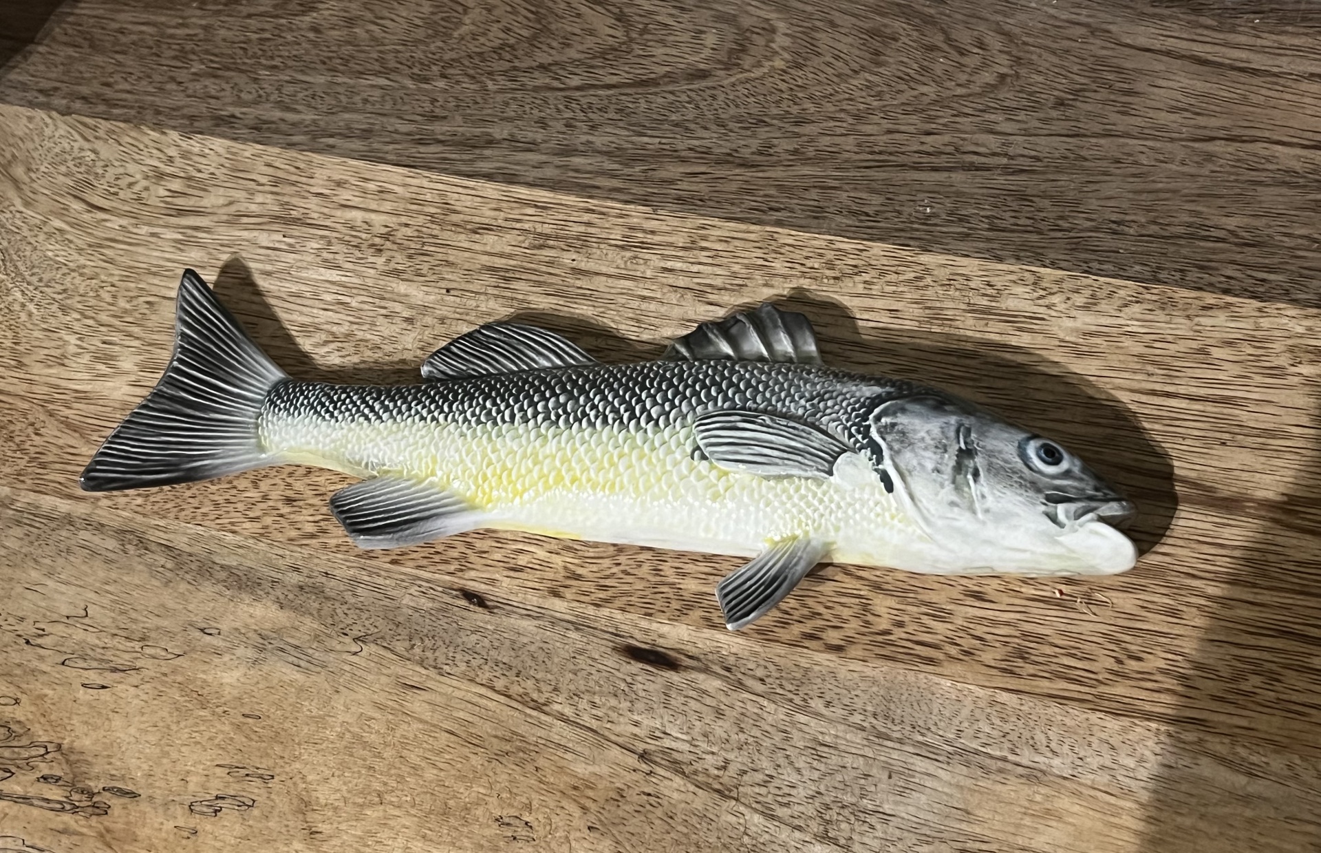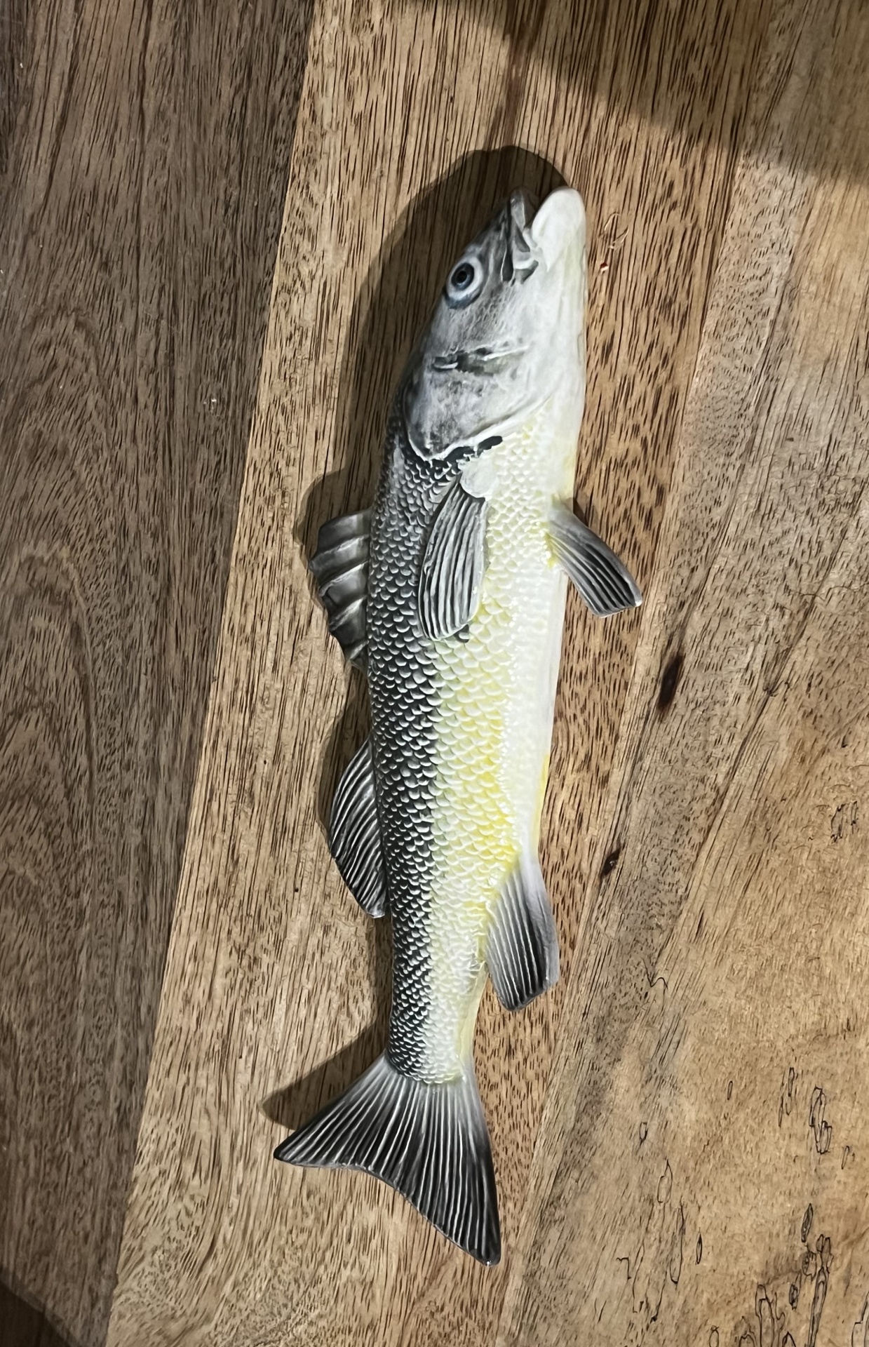 Peixe de parede ( robalo , multicor) 4,50 € 9,00 € Desconto de %. Partilhar Comprar Contactar oportunidades - últimas peças. Válido de 2 de Janeiro de 2026 às 00:00 até 1 de Janeiro de 2027 às 00:00. Peixe de parede em cerâmica multicor . Medidas: 25 cm Faióbidos Marca Faióbidos