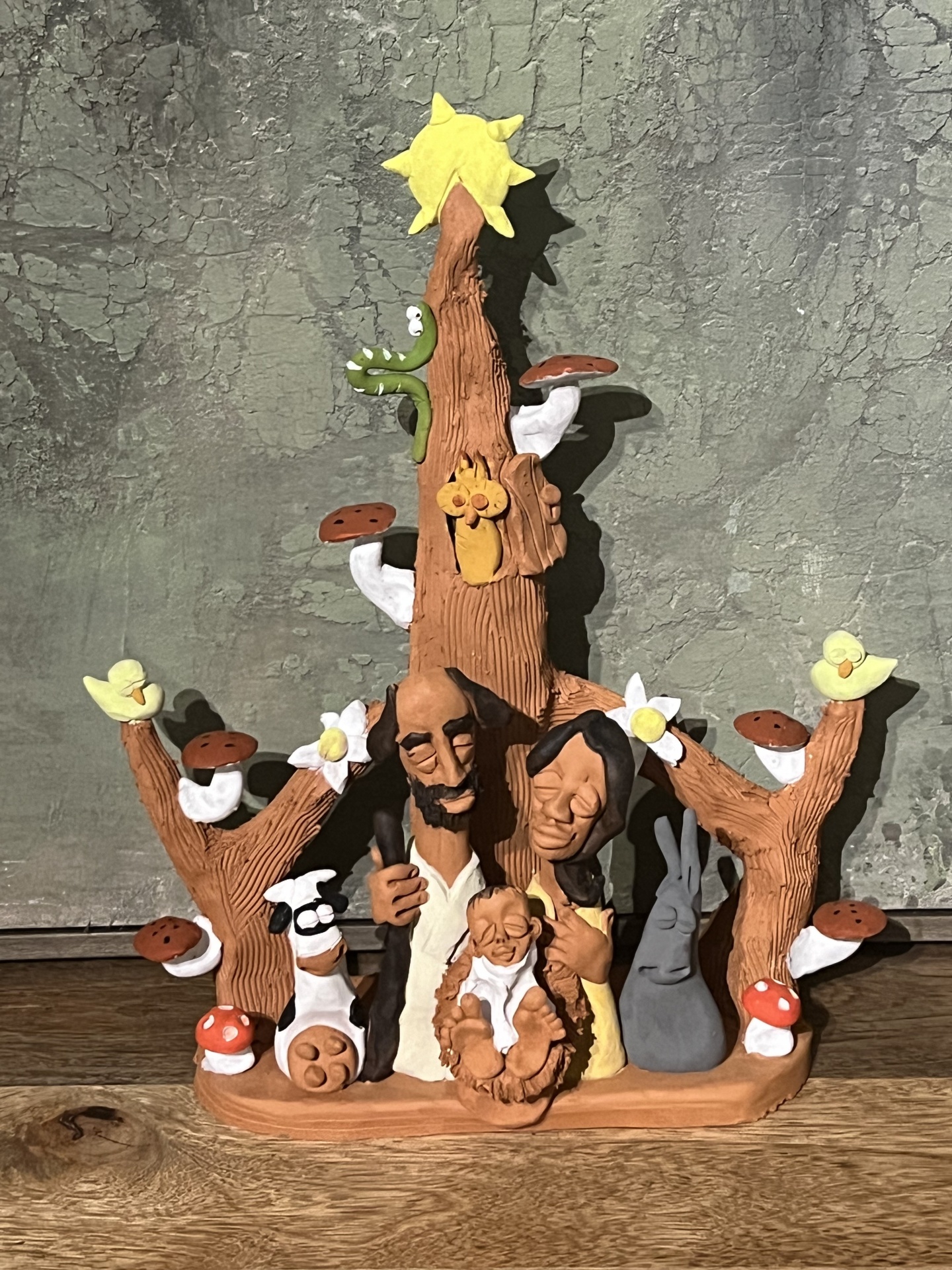 Presépio árvore 110,00 € Desconto de %. Partilhar Comprar Contactar Presépio em barro modelado manualmente . Medidas: 37 cm de altura , 30 cm de largura. Artesão: Tiago Cabeça Marca Tiago Cabeça