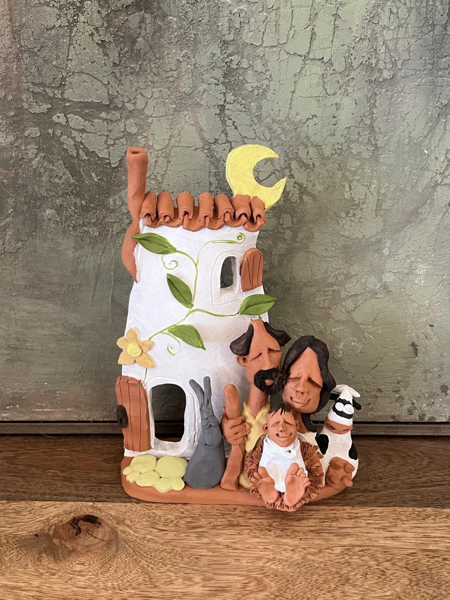 Presépio casa 90,00 € Desconto de %. Partilhar Comprar Contactar Presépio casa em barro modelado manualmente - Medidas: 30 cm de altura , base 20 cm. Artesão : Tiago cabeça Marca Tiago Cabeça