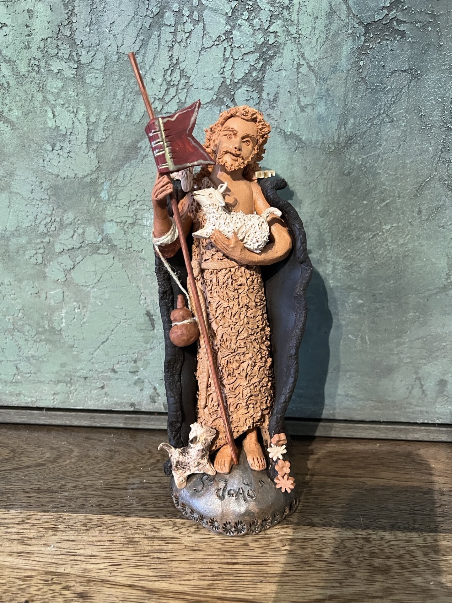 S. João 50,00 € Desconto de %. Partilhar Comprar Contactar S. João em barro modelado manualmente Medidas: 26 cm de altura Artesão: Milena Miguel Marca Milena Miguel Características