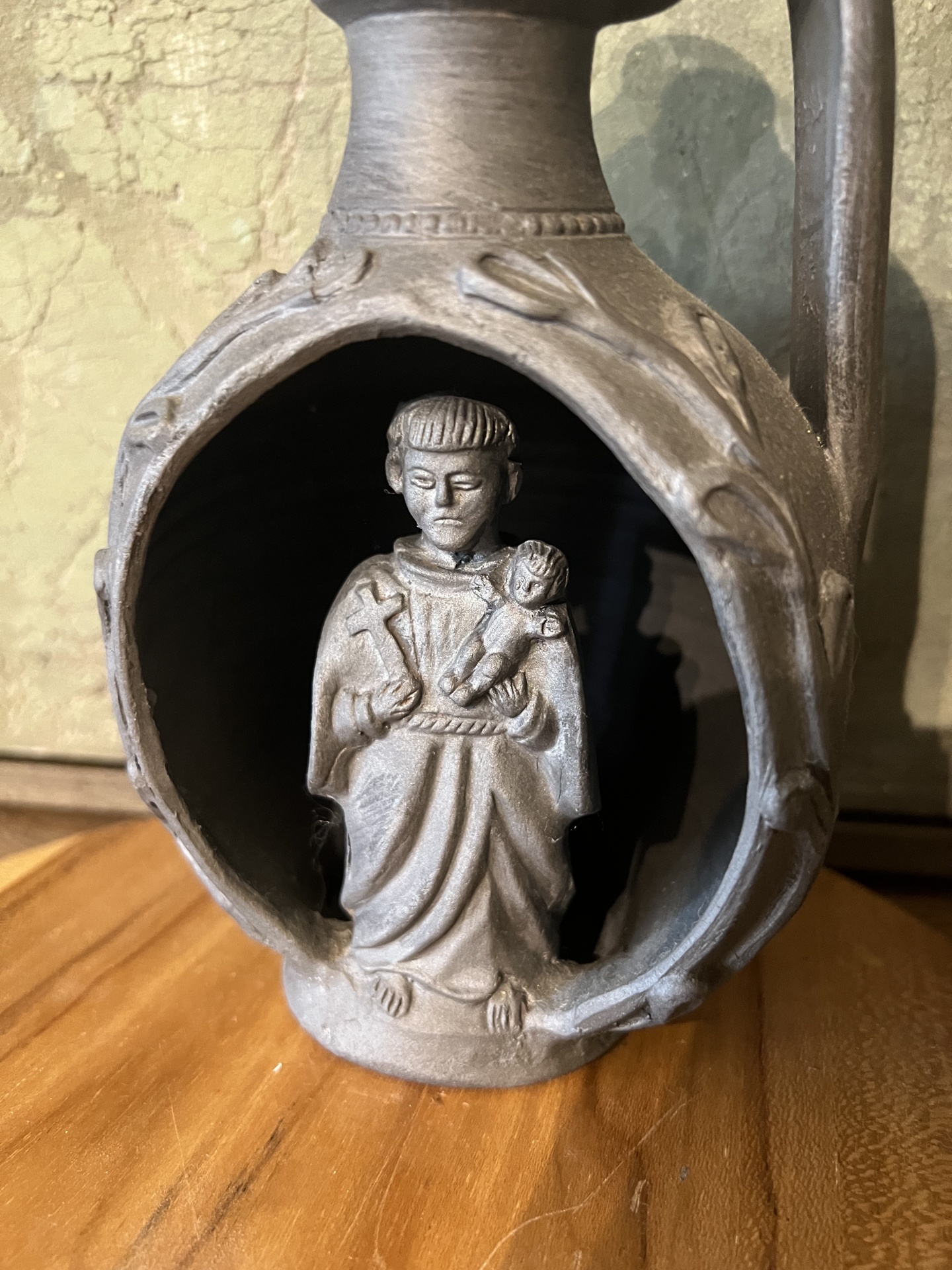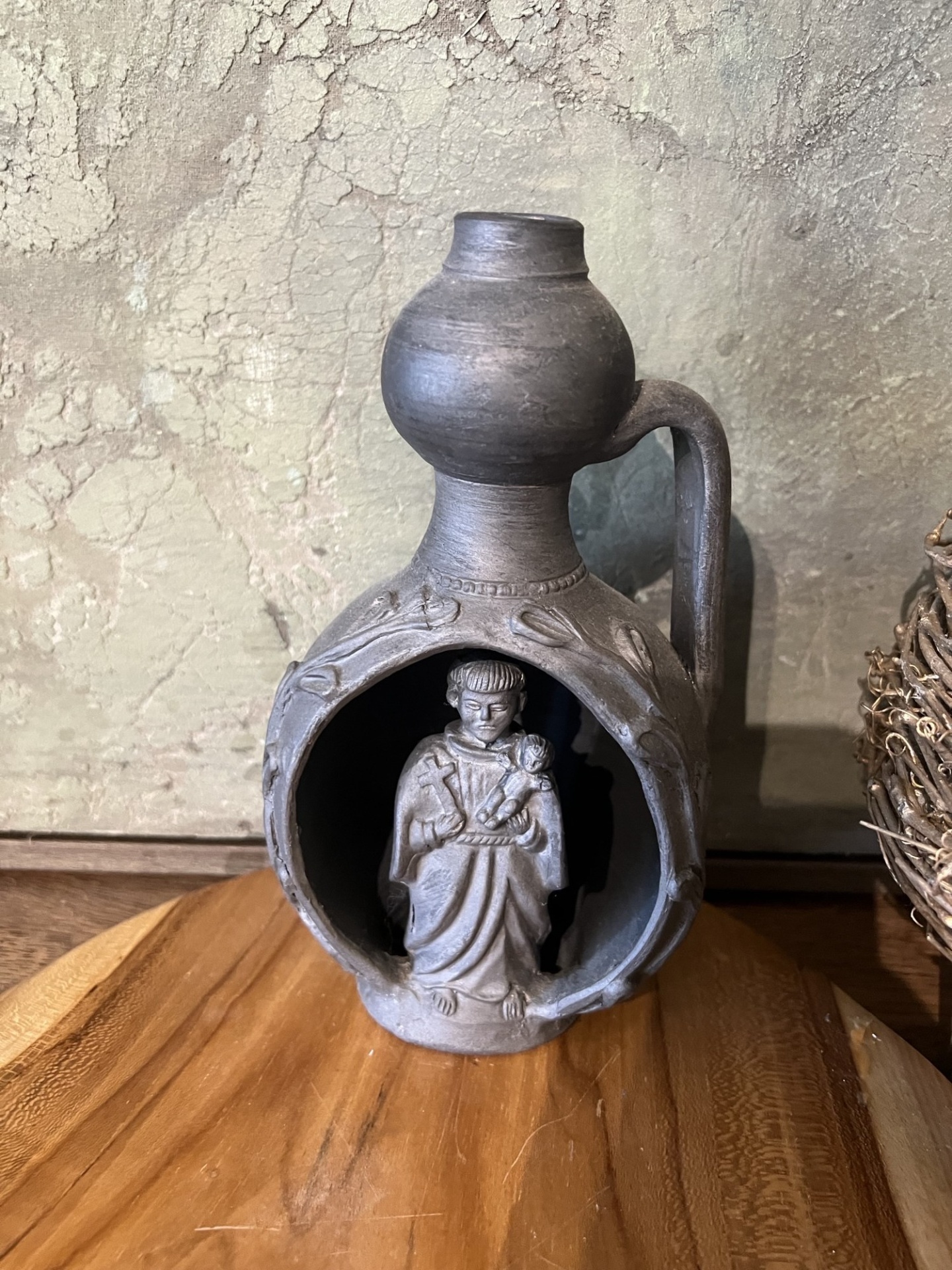 Santo António em bilha 50,00 € Desconto de %. Partilhar Comprar Contactar Santo António em bilha modelado manualmente em barro preto Medidas: 19 cm Artesâ: Júlio Alonso Marca Júlio Alonso Características