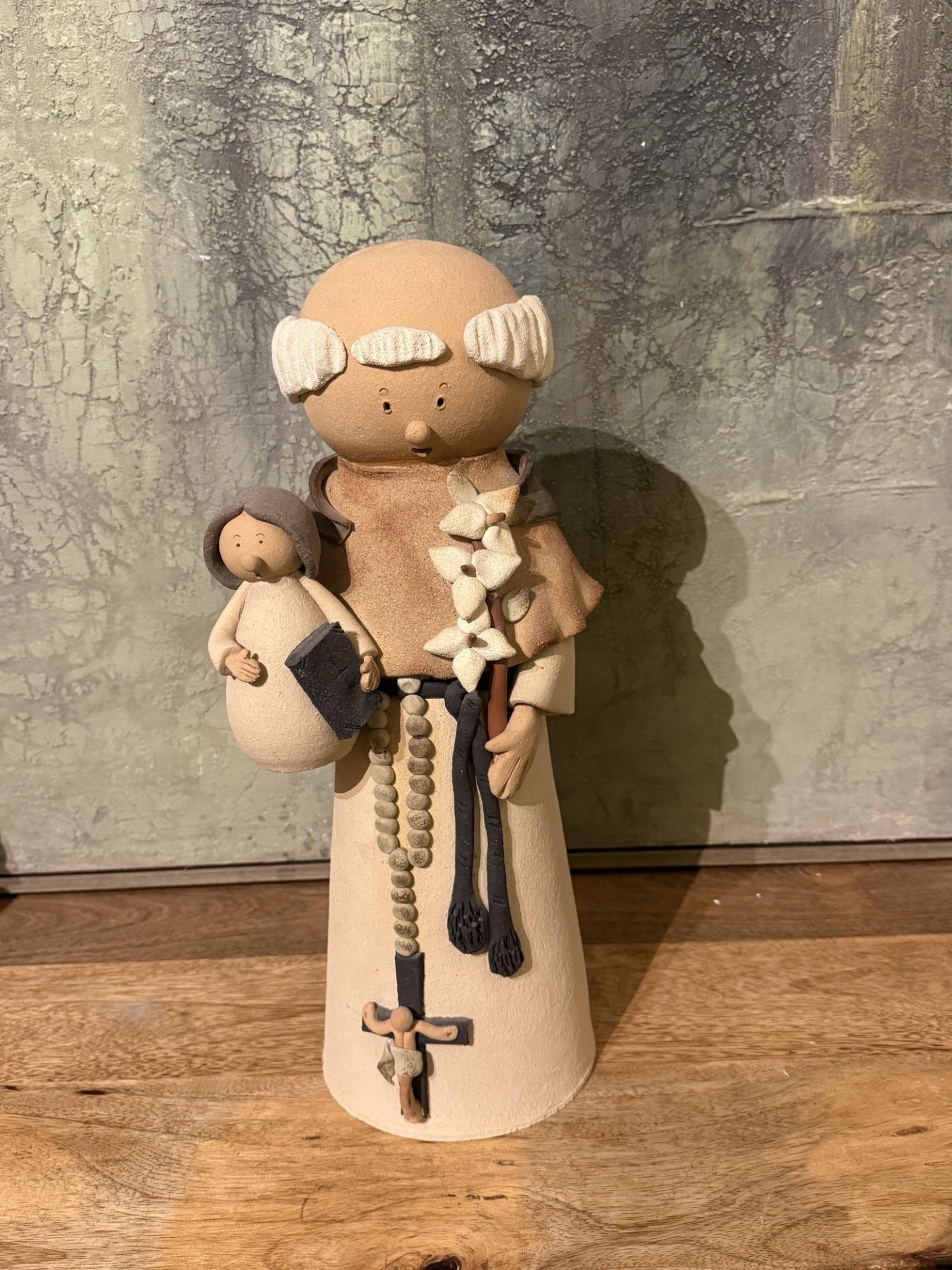 Santo António em grés 80,00 € Desconto de %. Partilhar Comprar Contactar 1 unidades em stock Santo António em grés moldado manuelamente Medidas: 43 cm de altura Artesã : Isabel lacerda Marca Isabel Lacerda