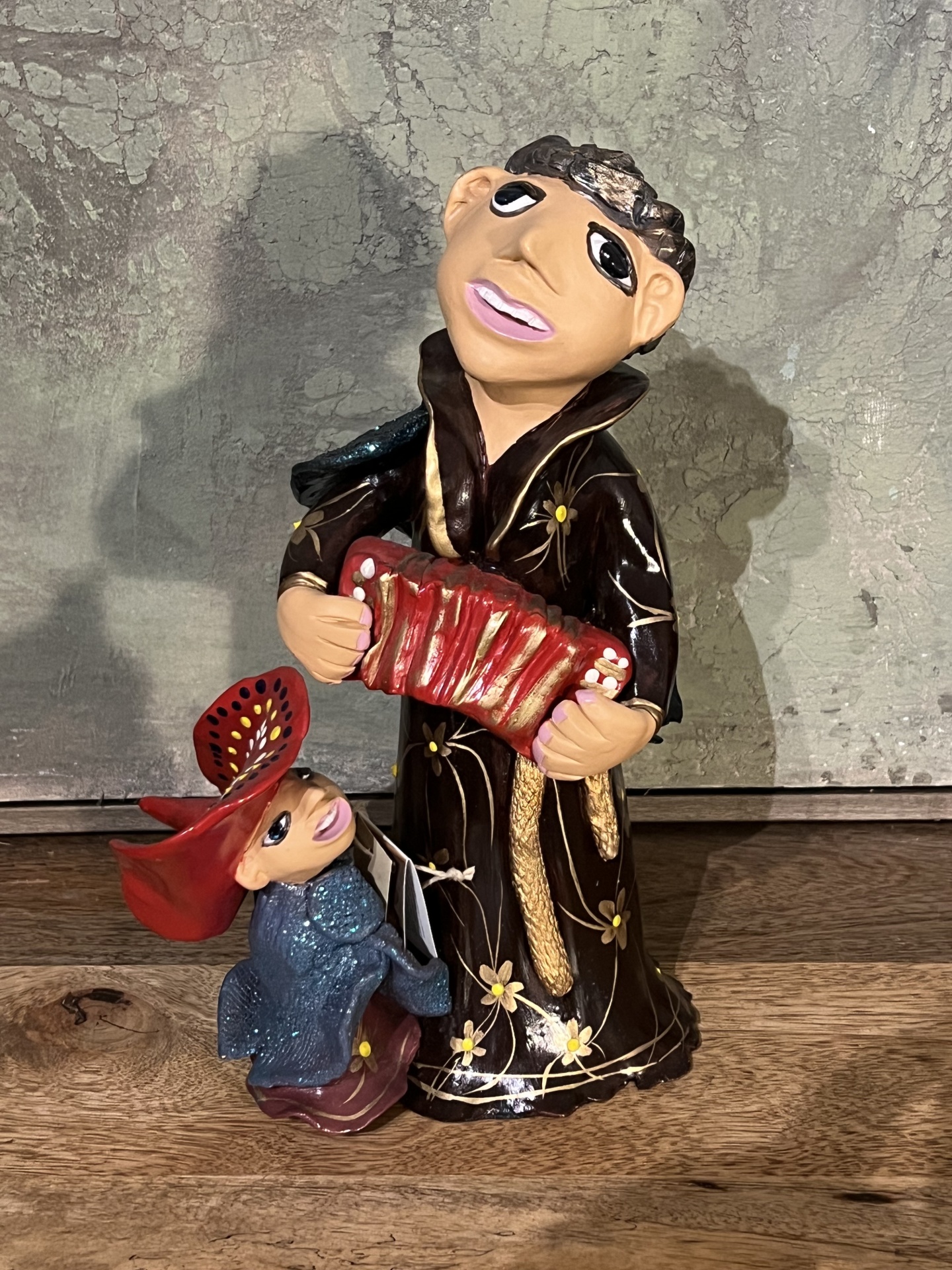 Santo António musical - acordeão 33,75 € 67,50 € Desconto de %. Partilhar Comprar Contactar 1 unidades em stock Oportunidades - últimas peças. Válido de 2 de Janeiro de 2026 às 00:00 até 1 de Janeiro de 2027 às 00:00. Santo António mesical com acordeão , em barro moldado manualmente. Altura 30 cm Artesão : Felismina Pinto Marca Felismina Pinto