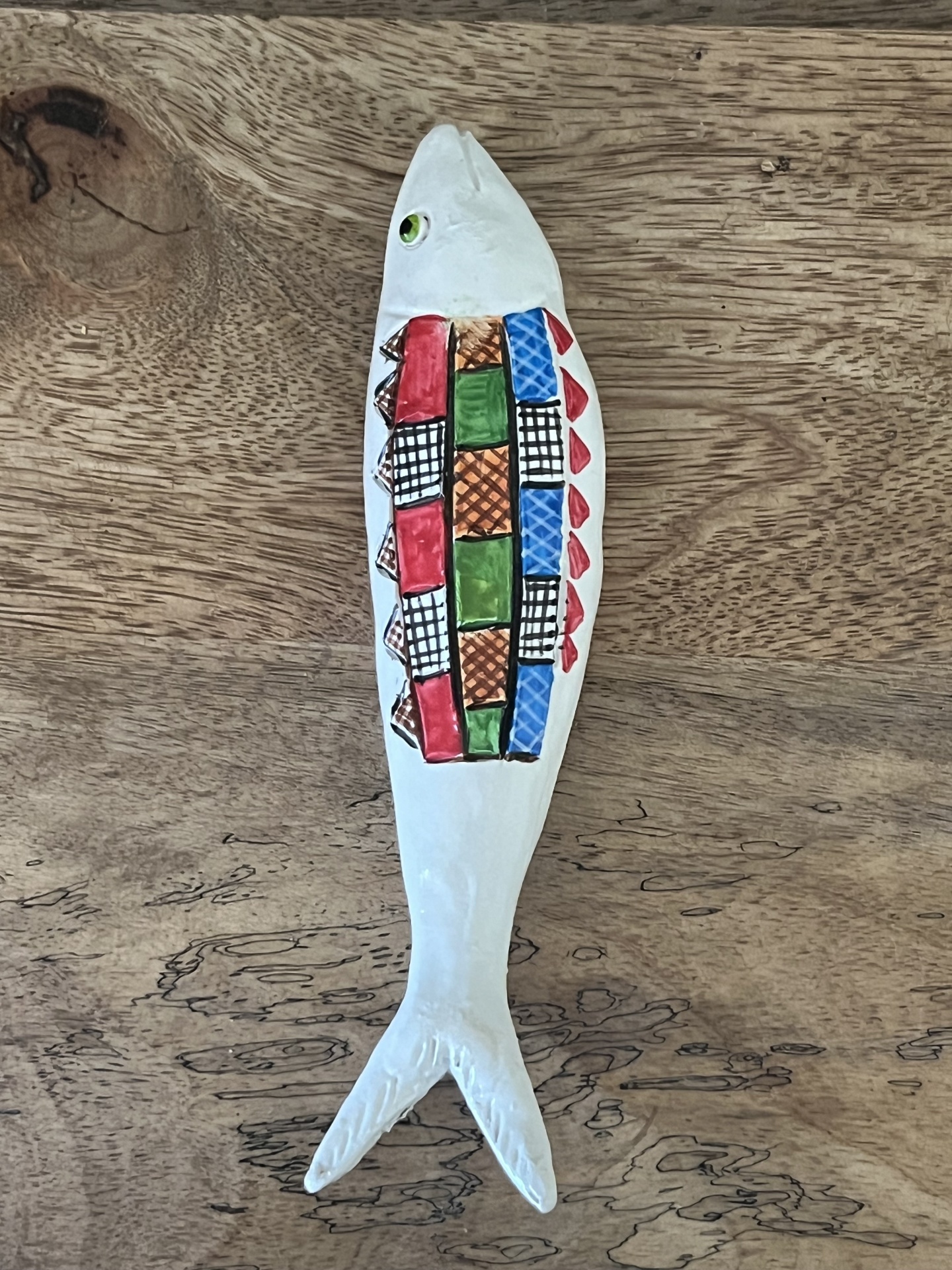 Sardinha em barro 5,00 € 10,00 € Desconto de %. Partilhar Comprar Contactar oportunidades - últimas peças. Válido de 2 de Janeiro de 2026 às 00:00 até 1 de Janeiro de 2027 às 00:00. Sardinha em barro moldado manualmente. Medidas: 18 cm comprimento Artesão: Manuel Macedo Marca Manuel Macedo