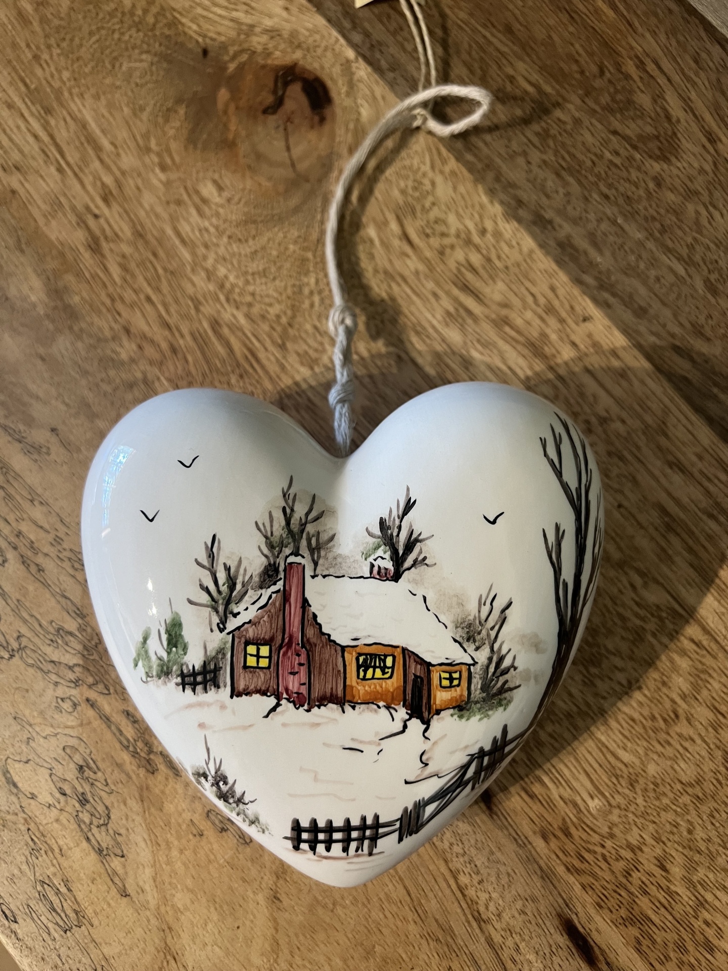 Coração Natal 8,75 € 17,50 € Desconto de %. Partilhar Comprar Contactar oportunidades - últimas peças. Válido de 2 de Janeiro de 2026 às 00:00 até 1 de Janeiro de 2027 às 00:00. Coração de cerâmica pintado manualmente com motivos de natal . Medidas: 14 cm de largura, 13 cm de altura . Artesão: Memória lusa Marca Memória Lusa